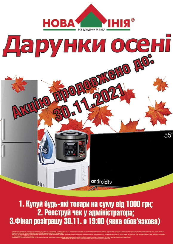 Акция действует с 8.10.2021 до 30.11.2021 в ТЦ «Новая Линия» г. Одесса.