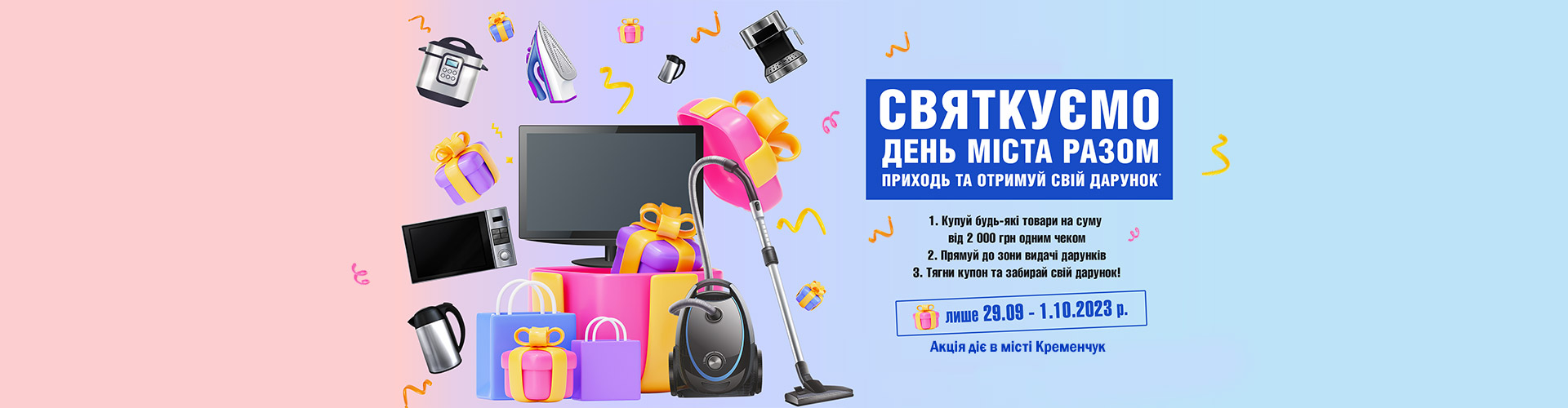 Акция действует 29.09.23 – 01.10.23 только в ТЦ "Новая Линия" по адресу г. Кременчуг, ул. Киевская, 66-г