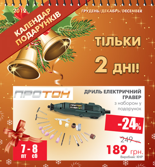 - Календар подарунків: гравер Протон ДЕ-200 – знижка 24%