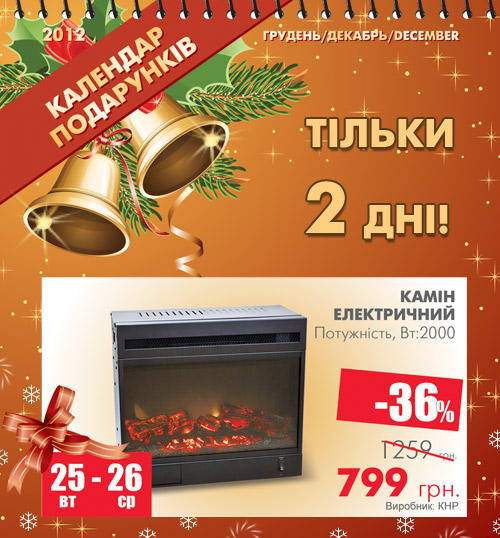 - Календар подарунків: камін електричний Satsum – знижка 36%!