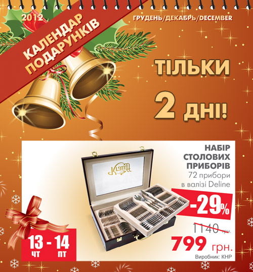 - Календар подарунків: набір столових приборів Deline в валізі – знижка 29 %!