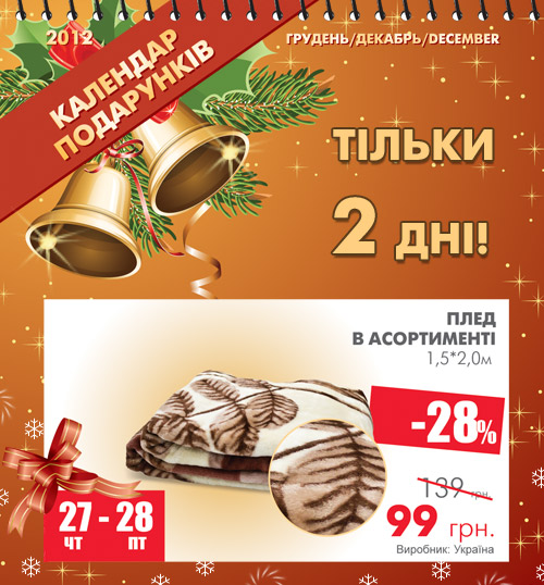 - Календар подарунків: пледи в асортименті – знижка 28%!