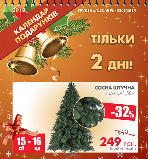 - Календар подарунків: сосна штучна – знижка 32 %!