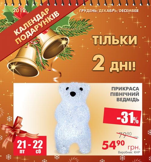 - Календар подарунків: статуетка Північний ведмідь – знижка 31%!