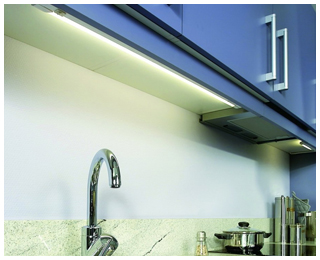 навісних шаф. Наприклад, компактні і майже непомітні подовжені лампи дають рівномірне світло по всій робочій поверхні. Також хороші вбудовані точкові світильники (невеликі галогенові лампи), які легко дозволяють висвітлити всю робочу зону. Крім хорошого виконання функції освітлення, такі світильники легко мити, вони не бояться пари, бризок води, масла.