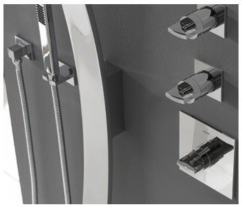 Змішувачі з термостатом – це продукт нового покоління. Такий змішувач увібрав в себе всі найкращі якості, він надійний, зручний та безпечний. Зовні термостат виглядає, як панель з рукоятками, які призначенні для вмикання/вимикання та регулювання температури води в термостаті.